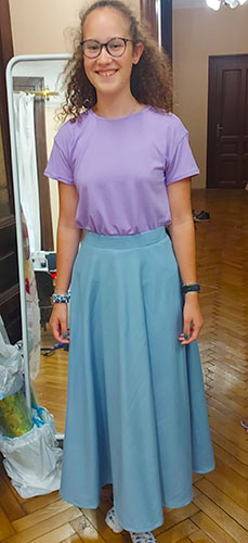 A tábor során egy pörgős szoknyát és egy pólót varrsz, de ha ügyes, és gyors vagy, készíthetsz többet is. :)